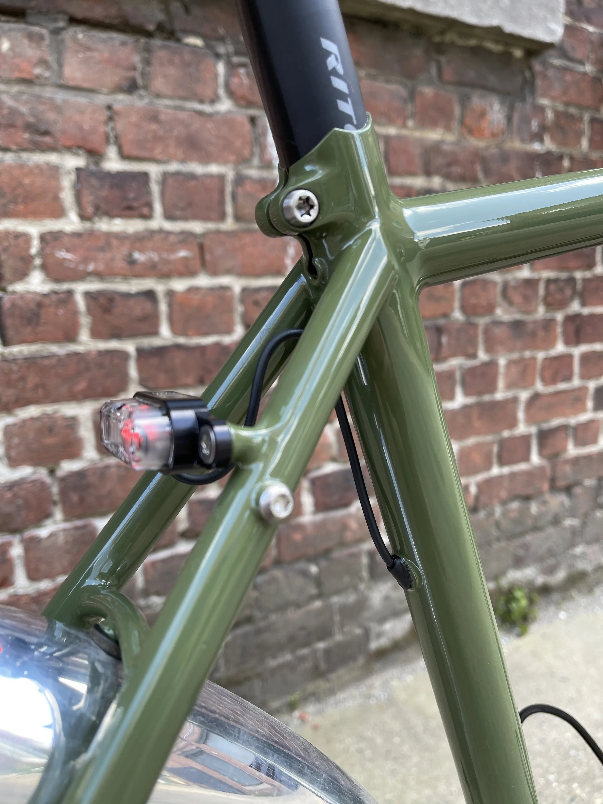 Alain est venu à l'atelier avec une selle Brooks qui a vu beaucoup de kilomètres et m'a demandé de construire un nouveau vélo autour d'elle. Il voulait un vélo pour parcourir aussi bien les routes que les chemins, léger mais équipé d’éclairage, de garde-boue et de porte-bagages pour partir en voyage sur plusieurs jours.