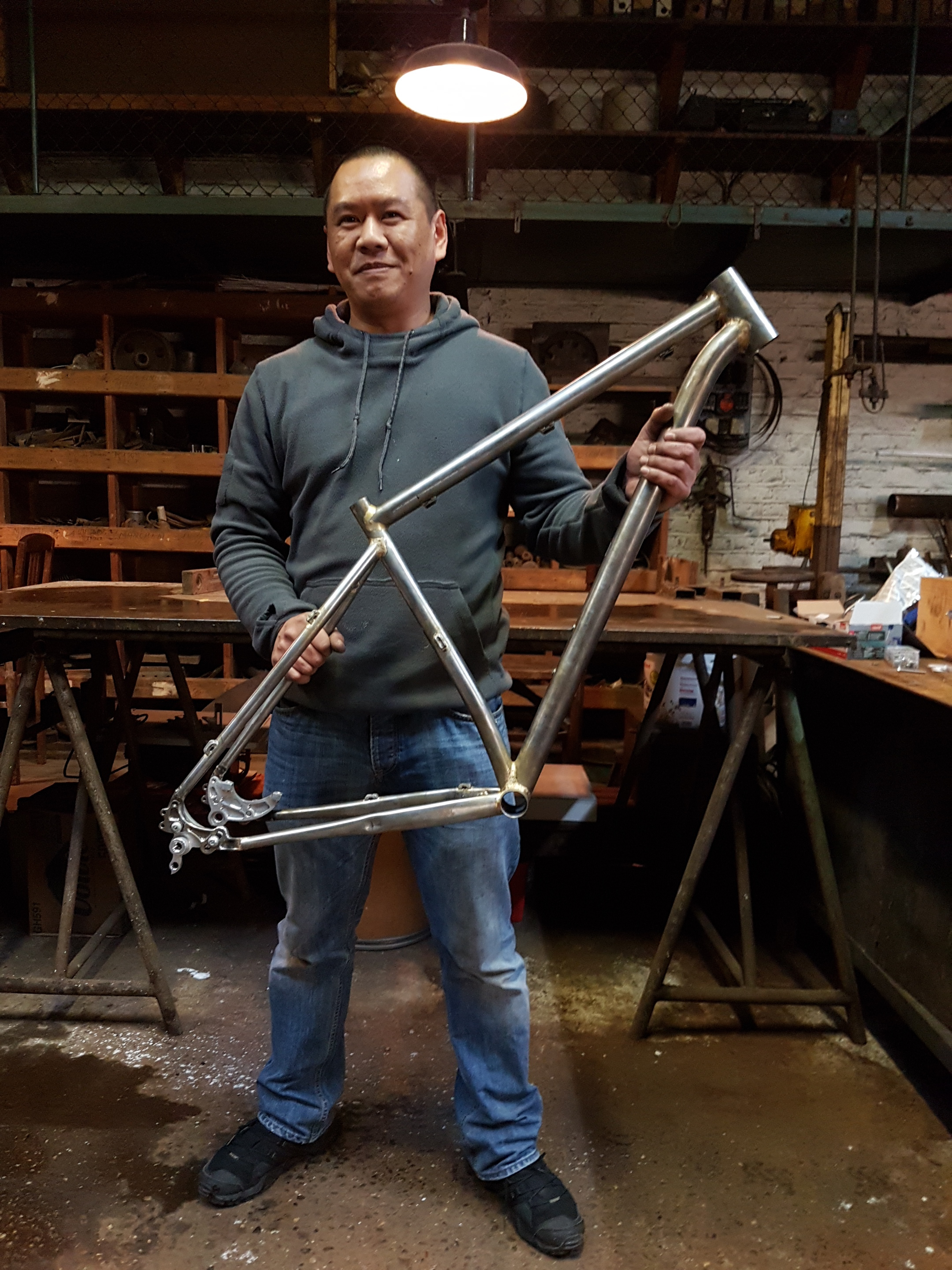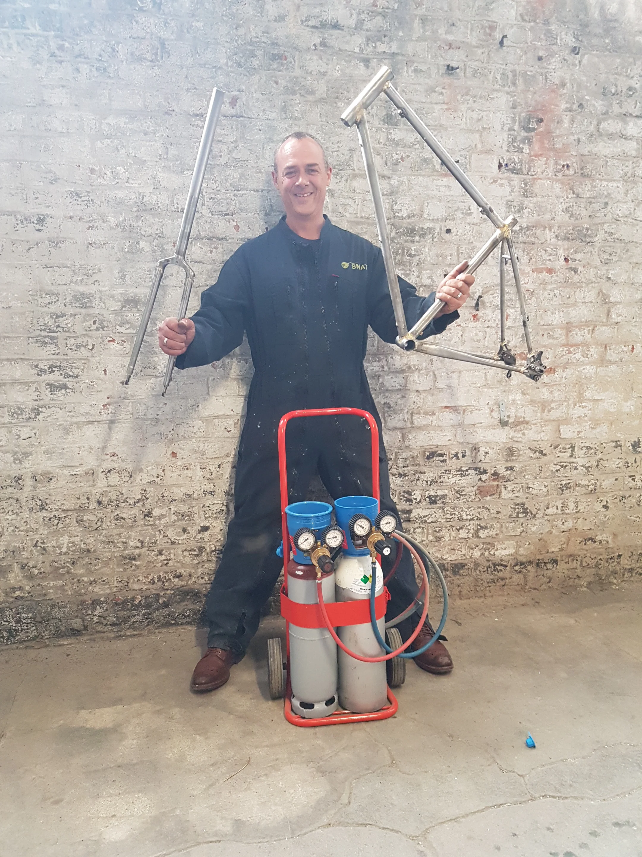 En tant que constructeur professionnel de cadre, je fournis mon expertise et mes conseils, et supervise toutes les étapes du processus pour vous permettre de créer votre premier cadre. En effet, vous effectuerez vous-même toutes les étapes d’assemblage, y compris la coupe d'onglets des tubes et bien sûr le brasage. Mon atelier est équipé des outils et des machines nécessaires pour construire un cadre de qualité professionnelle, impliquant une quantité de travail manuel conséquente qui justifie amplement l’appellation «fabriqué à la main».